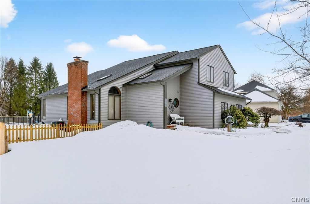 Welcome to this beautifully cared for two-story contemporary home in the Baldwinsville School District, offering 3 bedrooms and 2.5 baths with thoughtful updates throughout. From the moment you step inside, the vaulted ceilings and natural light in the living room create a bright and welcoming space that feels open yet comfortable. The heart of the home is the beautifully renovated kitchen, featuring granite countertops, a marble backsplash, updated appliances, custom cabinetry, and a spacious pantry highlighted by four Knotty Alder bypass barn doors that add warmth and character to the space. Hardwood floors and the island with storage make this kitchen perfect for everyday living and gathering with family and friends. Upstairs you'll find three sizeable bedrooms, including a primary suite with its own private ensuite bathroom, along with updated vanities, lighting, and fresh finishes throughout the home. The upper level also features a loft-like space open to the living room below, creating an airy feel and offering the perfect spot for a reading nook, workspace, or quiet retreat. The partially finished basement provides additional flexible living space and can easily serve as a home gym, recreation room, or guest area. A three-panel sliding glass door fills the home with natural light while leading to the beautifully updated composite deck and fully fenced backyard, creating an easy transition to outdoor living. The backyard continues to impress with an in-ground pool, making it the perfect setting for summer gatherings, relaxing afternoons, and entertaining guests. Additional highlights include a two-car garage and numerous mechanical and cosmetic updates throughout, offering comfort, style, and peace of mind for the next owner. Delayed showings and negotiations begin Friday March 6th at 10:00 a.m