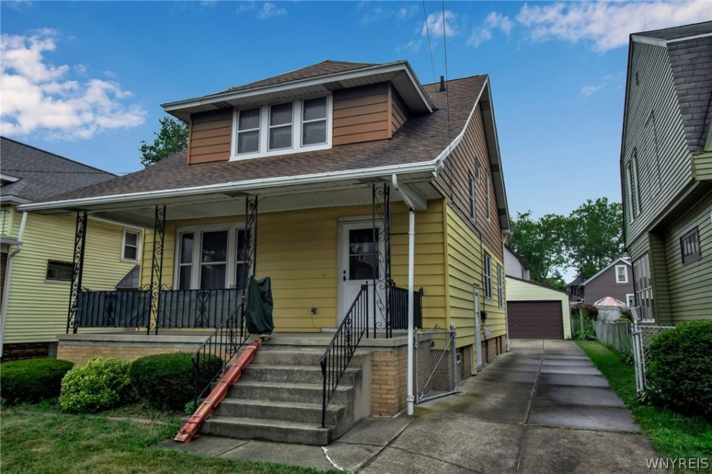 Welcome to this charming 4-bedroom, 1.5-bath home in the heart of South Buffalo, offering classic character, generous space, and a location that's hard to beat. Situated on a desirable street, the home is within walking distance to schools, a hospital, restaurants, shops, and banks, while just a short drive to the beautiful Our Lady of Victory National Shrine & Basilica and the Buffalo and Erie County Botanical Gardens. Owned and lovingly maintained by the same family for over 50 years, this home reflects true pride of ownership. Inside, the 1,449 square feet feature classic architectural details throughout. The spacious living room (28x12) with a decorative fireplace offers a bright and welcoming gathering space, while the formal dining room (12x12) is ideal for entertaining, showcasing beautiful wood-beamed ceilings, crown molding, and a charming picture ledge. The eat-in kitchen (12x10) features wainscoting and a sun-filled dinette area (12x10), perfect for morning coffee or casual meals. Original woodwork throughout the home adds warmth and character, and the generously sized bedrooms offer large closets, providing excellent storage. Comfort and efficiency are covered with central air conditioning, a Lennox furnace, and a new hot water tank installed in October 2025. Outside, enjoy the fully fenced yard and a spacious 2.5-car garage. The inviting covered concrete front (21x8) porch with decorative wrought iron railings creates the perfect spot to relax and enjoy the neighborhood. Additional features such as glass block basement windows add both durability and peace of mind. This is a wonderful opportunity to own a well-cared-for home full of character in one of South Buffalo's most convenient and sought after locations. Seller will review offers as submitted.