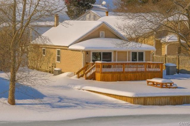 Floor-to-ceiling views in both the living room and primary bedroom of this immaculate ranch offer a stunning, up-close view of the Seneca River and the surrounding natural landscape. Nestled in the historic hamlet of Jack's Reef on a quiet country cul-de-sac, the home sits just 5 miles east of the Weedsport Thruway entrance and 5 miles west of the Village of Baldwinsville, with Syracuse University, Hancock International Airport, and downtown Syracuse only about 15 miles away. Enjoy exceptional privacy provided by a massive stockade fence on three sides and open riverfront on the fourth, complete with a boat launch for easy access to Cross Lake, Baldwinsville, and the Intracoastal Canal system (you can go anywhere!). The area is known for being one of Central New York's most popular (famous for bass, northern pike, and walleye) and hunting (ducks galore) vacation spots. Upgraded attic insulation helps keep utility costs remarkably low. At the same time, the home's many features-including 88' of private waterfrontage with boat launch, public water, well-maintained riverside deck, updated central air, newer furnace, like-new carpet, fresh interior paint, modern appliances, and a walk-in pantry-ensure comfort and convenience year-round. Perfect as a full-time residence, vacation getaway, or short-term rental, this rare waterfront property is offered by an owner reluctantly ready to downsize. A year-round ranch on the water under 200K does not come along very often - we hope you will schedule a private visit. Listed as ML#1665104