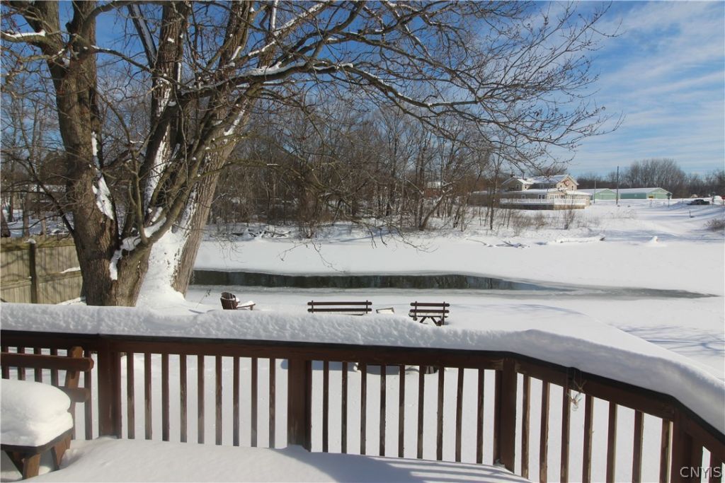 Floor-to-ceiling views in both the living room and primary bedroom of this immaculate ranch offer a stunning, up-close view of the Seneca River and the surrounding natural landscape. Nestled in the historic hamlet of Jack's Reef on a quiet country cul-de-sac, the home sits just 5 miles east of the Weedsport Thruway entrance and 5 miles west of the Village of Baldwinsville, with Syracuse University, Hancock International Airport, and downtown Syracuse only about 15 miles away. Enjoy exceptional privacy provided by a massive stockade fence on three sides and open riverfront on the fourth, complete with a boat launch for easy access to Cross Lake, Baldwinsville, and the Intracoastal Canal system (you can go anywhere!). The area is known for being one of Central New York's most popular (famous for bass, northern pike, and walleye) and hunting (ducks galore) vacation spots. Upgraded attic insulation helps keep utility costs remarkably low. At the same time, the home's many features-including 88' of private waterfrontage with boat launch, public water, well-maintained riverside deck, updated central air, newer furnace, like-new carpet, fresh interior paint, modern appliances, and a walk-in pantry-ensure comfort and convenience year-round. Perfect as a full-time residence, vacation getaway, or short-term rental, this rare waterfront property is offered by an owner reluctantly ready to downsize. A year-round ranch on the water under 200K does not come along very often - we hope you will schedule a private visit. Also listed as ML#1665191.